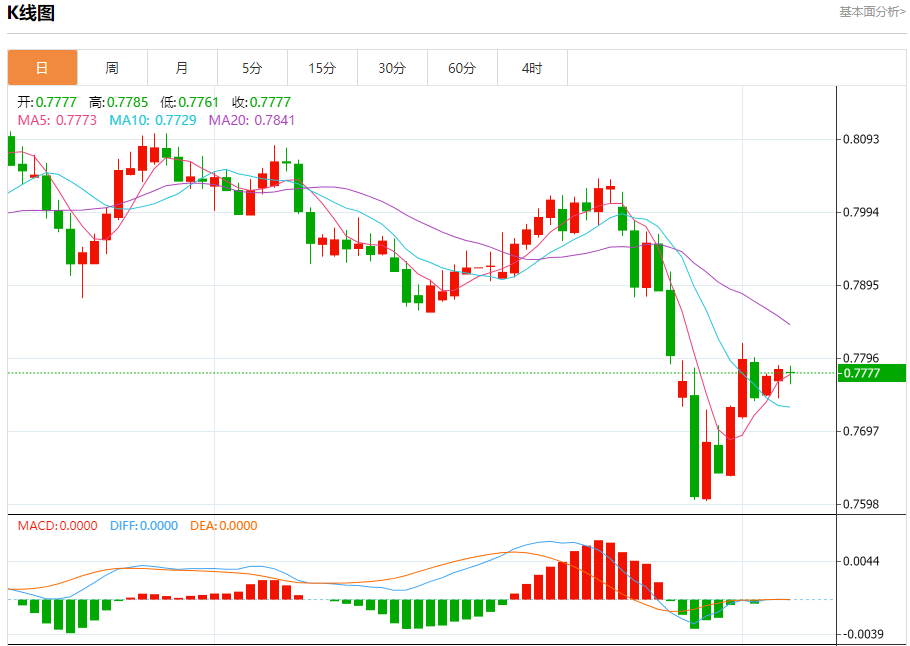 周五纽盘,瑞郎兑美元交投于0.7779,跌幅为0.05%。