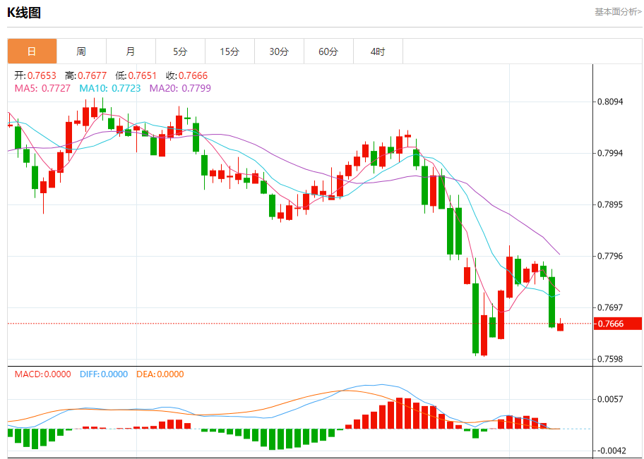 周二纽盘,瑞郎兑美元交投于0.7668,涨幅为0.08%。