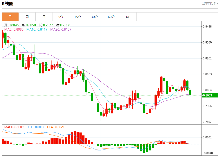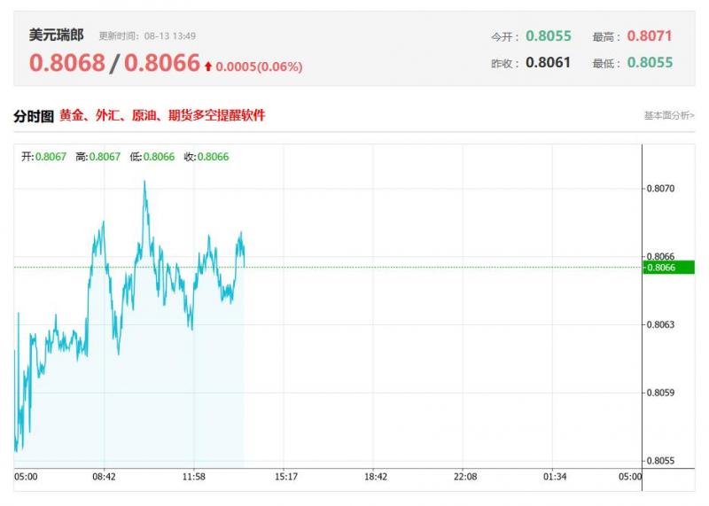 8月11日,周一欧市初盘,美元/瑞郎在连续两天上涨后下跌,交投于0.8060附近。由于美联储(Fd)在今年年底前多次降息的可能性上升,该货币对小幅走低。周二的美国消费者通胀数据,以及周四公布的英国第二季度GD初值和美国生产者价格指数(I),将进一步推动美国(U)经济状况。 衡量美元兑六种主要货币价值的美元指数(D