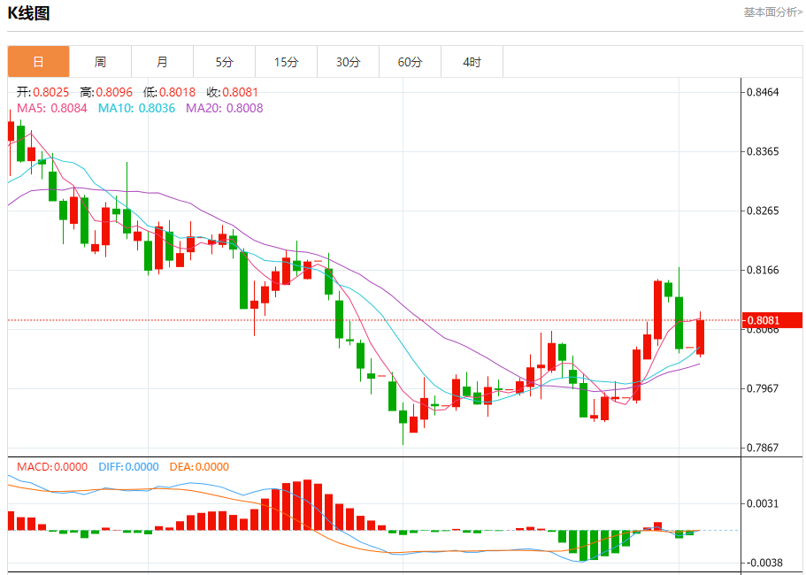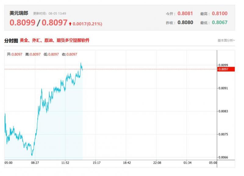 8月5日,周二亚市盘中,美元/瑞郎徘徊在0.08085附近。 瑞郎兑美元周一小幅走低,随着美元企稳,在上周疲软的就业数据后美国国债收益率反弹的支撑下,结束了连续两天的上涨。弱于预期的劳动力市场数据引发了美元广泛的抛售,帮助美元/瑞郎从数周高点回落。 尽管瑞士通胀数据强于预期,但周一仍出现下降,7月份消费者价