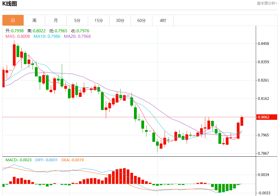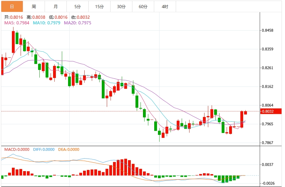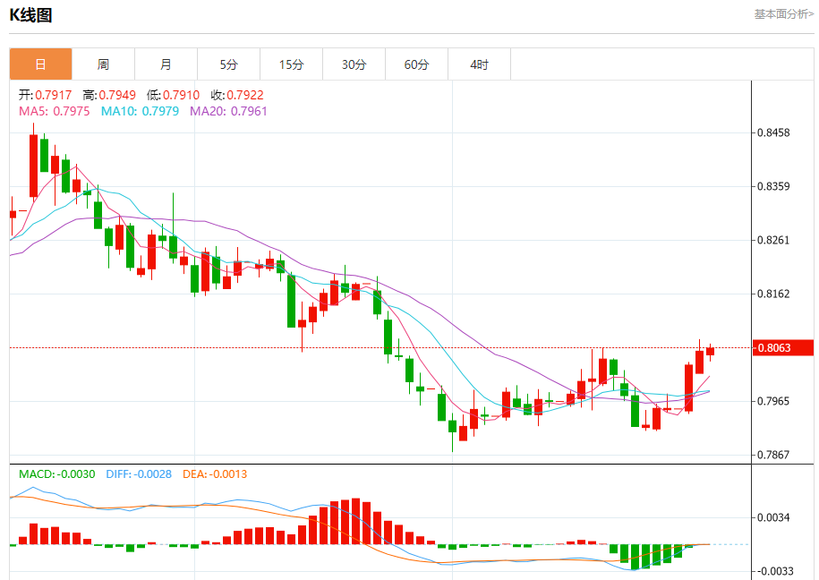 7月30日,周三欧市初盘,美元/瑞郎货币对在0.8055附近交投于负值区域。在美联储(Fd)利率决定和美国关税截止日期之前,市场转为谨慎。 预计美联储将在周三晚些时候的政策会议上维持利率不变,尽管一些美联储官员可能会罕见地反对降低借贷成本。根据联邦基金期货合约的定价,投资者已经将9月份降息的可能性定价为60%以