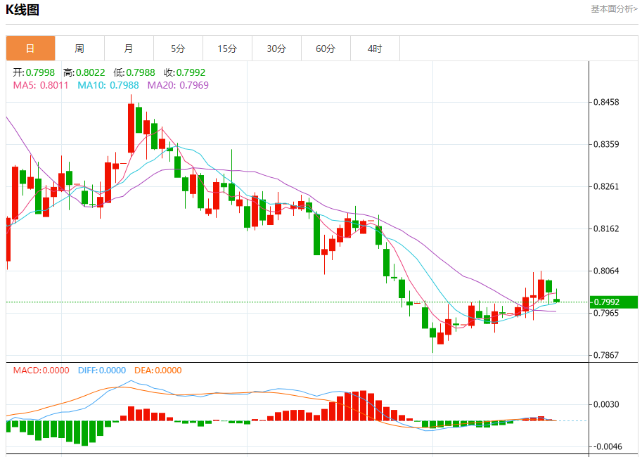 周二亚盘,美元/瑞郎徘徊于0.7985附近,瑞士国家银行的视线存款激增112亿瑞士法郎,引发市场猜测,但可能是由于常规流动性变动。交易者将从美联储(Fd)主席杰罗姆-鲍威尔周二晚些时候的讲话中获取更多线索。 市场基本面分析 瑞士法郎(CHF)连续第二天对美元(UD)走强。周一早些时候,美元/瑞郎跌破0.8000关口,因美