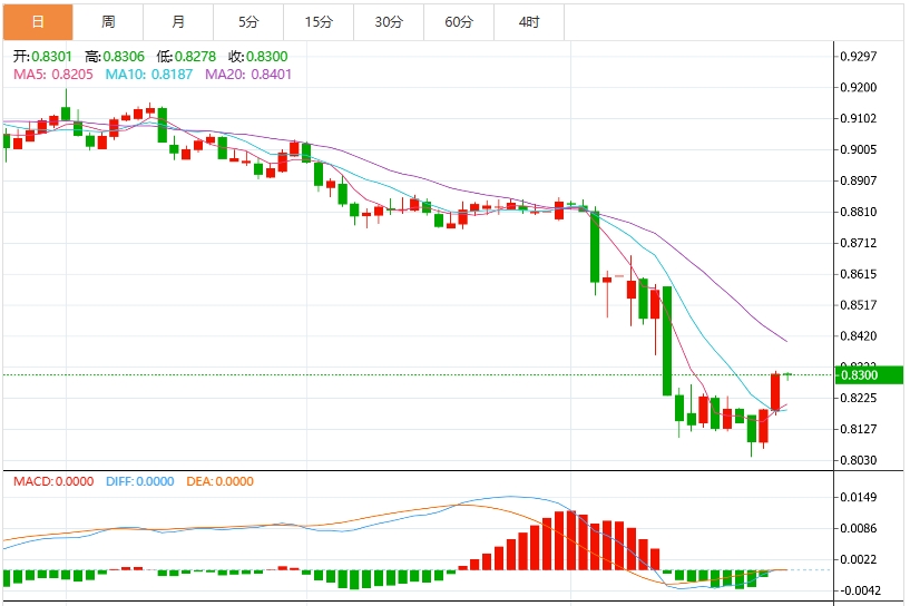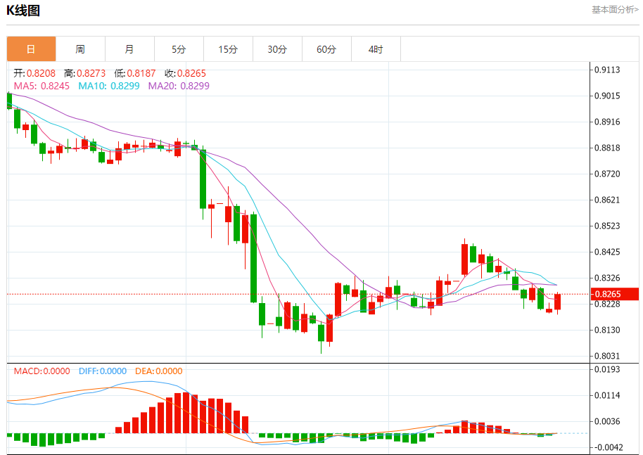 美元兑瑞郎今日汇率最高0.8284,最低0.8282,涨跌0.0012,涨跌幅0.15%。 市场基本面分析 瑞士央行宽松预期持续升温,令瑞郎承压下行,这也为美元兑瑞郎汇率提供了支撑。瑞士央行行长施莱格尔最新表态引发市场广泛关注,他明确表示将动用"所有政策工具"来应对经济挑战,其中不排除重新引入负利率政策的可