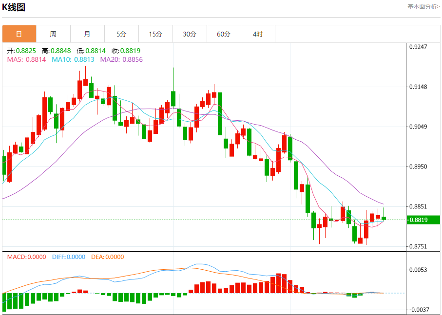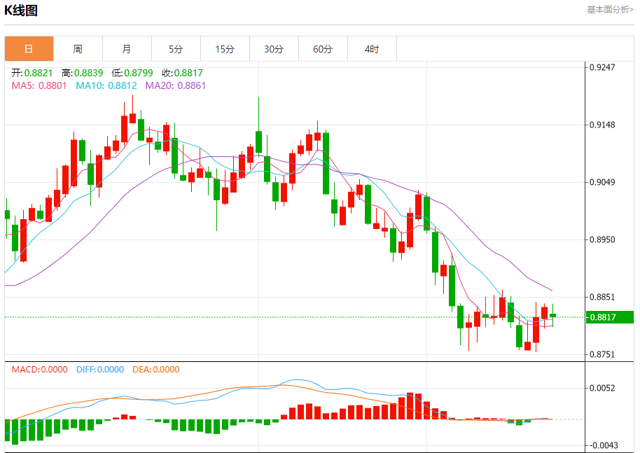3月24日,周一欧市初盘,美元/瑞郎连续第四个交易日延续连涨势头,交易于0.8840附近。随着美元收复每日失地,该货币对上涨,在围绕美联储(Fd)的鹰派基调中,美国国债收益率上升。上周,美联储主席杰罗姆鲍威尔指出,“劳动力市场状况稳固,通胀率已接近我们2%的长期目标,尽管它仍然有些高。 衡量美元兑六种主要货币