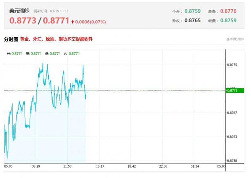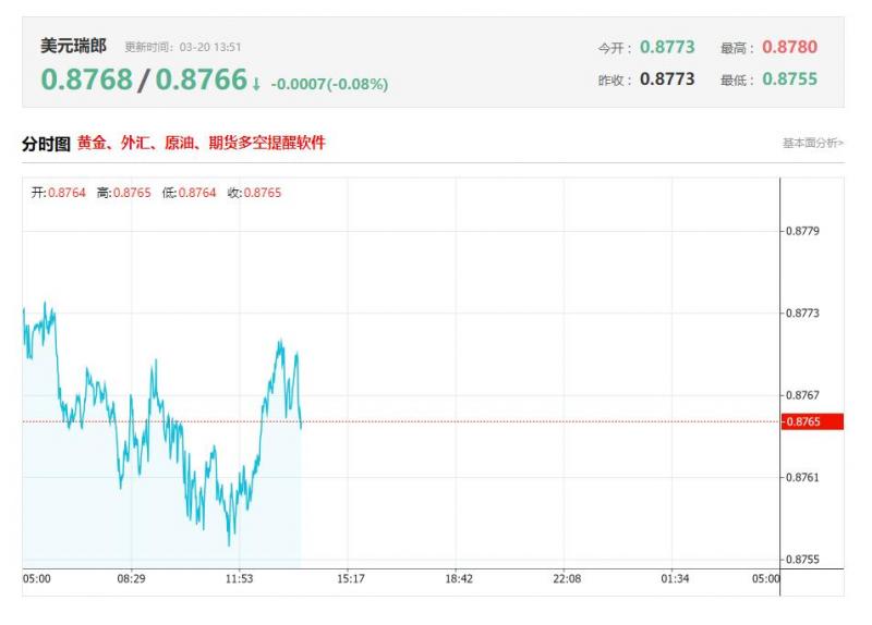 3月20日,周四欧市初盘,美元/瑞郎货币吸引了一些卖家至0.8760附近。尽管美国关税政策存在高度不确定性,但在美联储(Fd)表示可能在今年晚些时候降息后,美元小幅走低。周四晚些时候,瑞士国家银行(NB)的利率决定将成为人们关注的焦点。 周三,正如市场普遍预期的那样,美联储在3月会议上将利率维持在4.25%至4.5%的