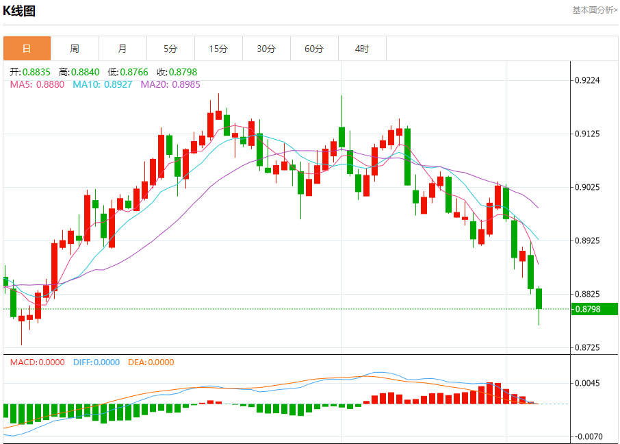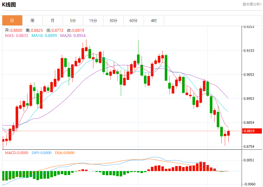 3月10日,周一欧市初盘,美元/瑞郎货币对连续第三天继续下跌,交投于0.8790附近。由于对美国经济可能放缓的担忧日益加剧,美元面临阻力。然而,随着美国国债收益率上升,进一步的下行空间可能会受到限制。 追踪美元兑六种主要货币的美元指数已连续第五个交易日下跌,徘徊在103.90附近。与此同时,在撰写本文时,美国国