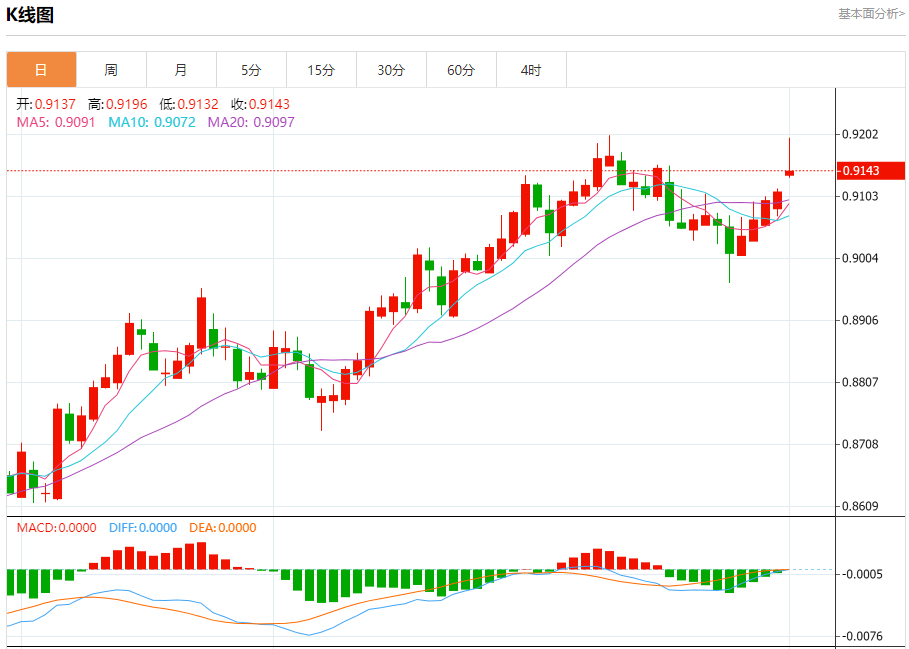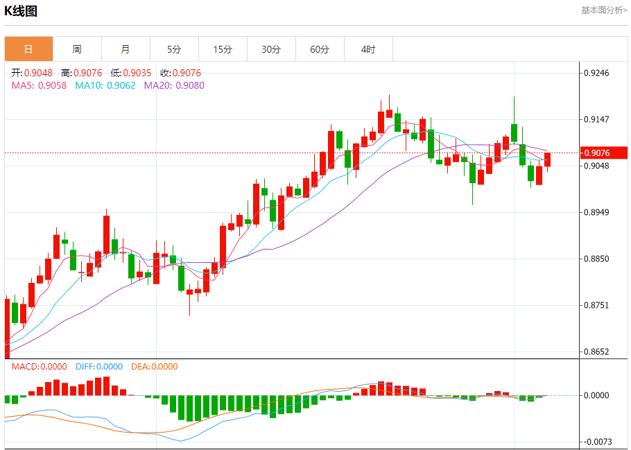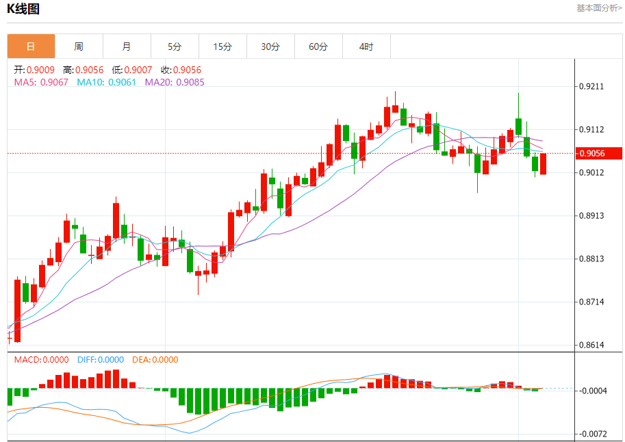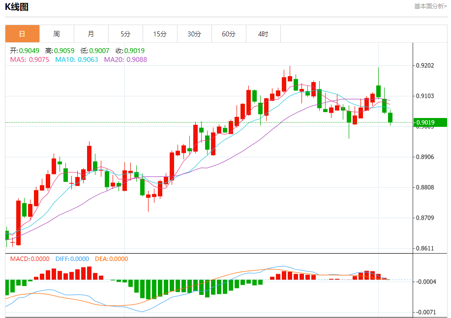 2月6日,周四欧市初盘,美元/瑞郎守住0.9000心理关口,并吸引了一些逢低买盘,结束了三天连跌,触及前一天的一周多低点。现货价格目前在0.9030区域附近交易,日内上涨超过0.15%,尽管基本面背景在确认本周从0.9200附近的急剧回调已经结束之前需要谨慎。 美元在最近跌至一周多低点后进行适度反弹。除此之外,股市普遍积