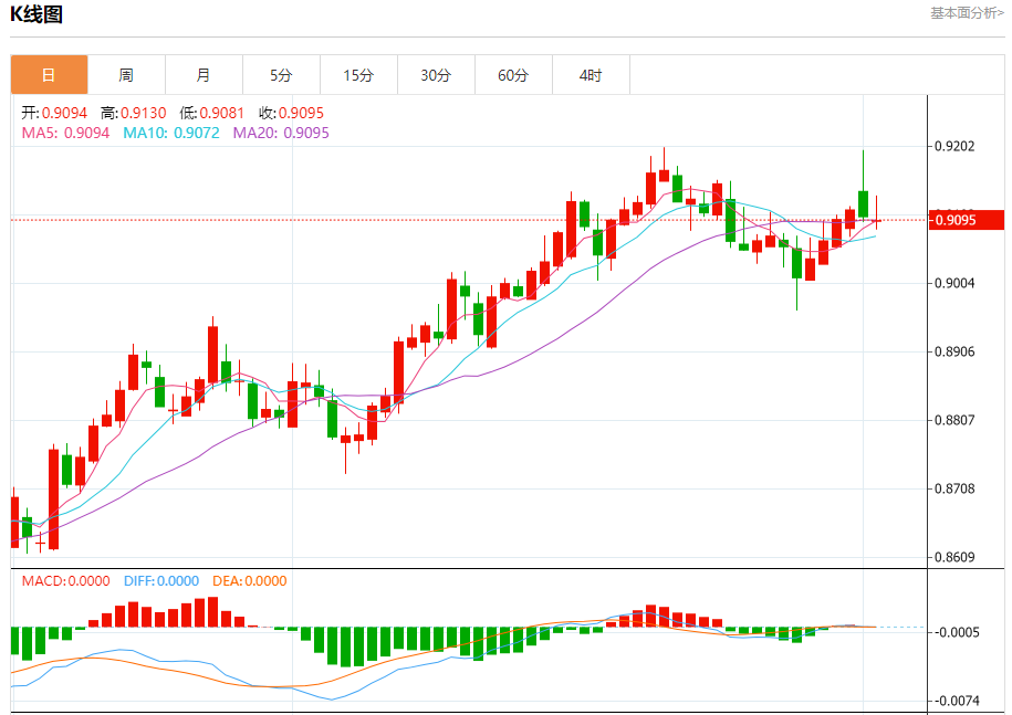 周五纽盘,瑞郎兑美元交投于0.9077,涨幅为0.31%。 瑞郎基本面分析 瑞士央行的货币政策目标是维持物价稳定和确保瑞士法郎的稳定。在2024年,瑞士央行多次降息,将利率降至较低水平,以应对经济增长放缓和通胀压力。这种宽松的货币政策使得瑞郎的吸引力下降,对瑞郎汇率形成一定的贬值压力。当瑞郎贬值时,