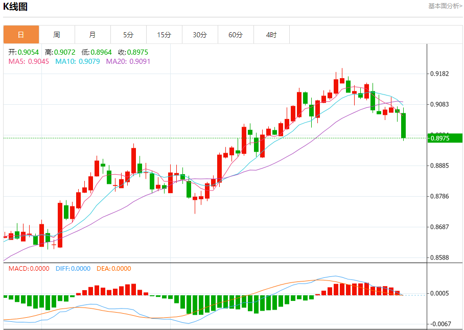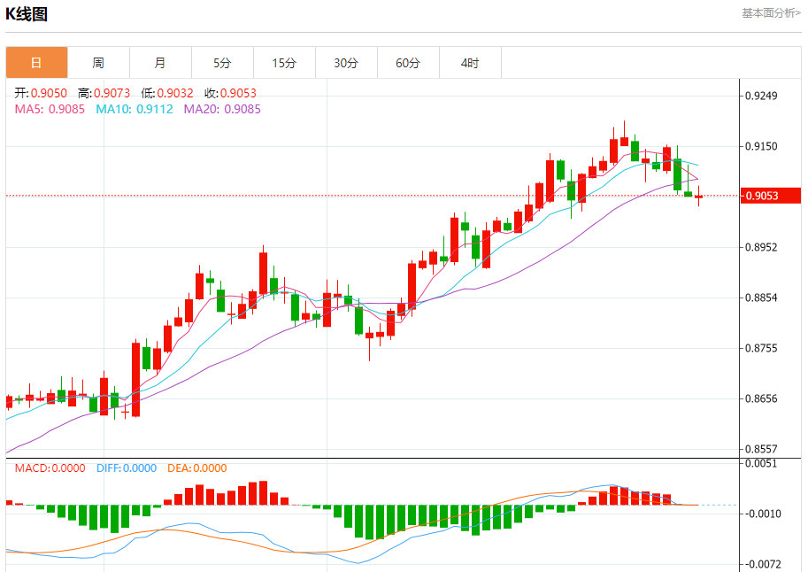 周四纽盘,瑞郎兑美元交投于0.9076,涨幅为0.09%。 瑞郎基本面分析 市场普遍预期瑞士国民银行(NB)将继续降息以避免瑞士通胀持续低迷,瑞郎表现相对坚挺。 瑞士央行已将关键借款利率下调至0.5%,并面临着通胀低于目标的风险。市场认为,瑞士央行为了应对这一挑战,可能会采取进一步的货币宽松政策