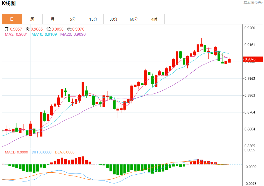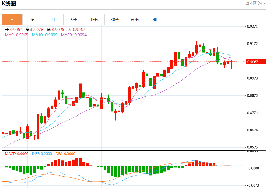 1月23日,周四欧市初盘,美元/瑞郎货币对难以利用前一天从0.9035-0.9030区域或两周低点的温和反弹势头,在周四亚洲时段窄幅震荡。现货价格目前交投于0.9060区域,因美元走势低迷,当日几乎持平。 美元指数追踪美元兑一篮子货币的表现,难以利用隔夜从月度低点的反弹势头,因为市场押注美联储(Fd)今年将降息两次。也就