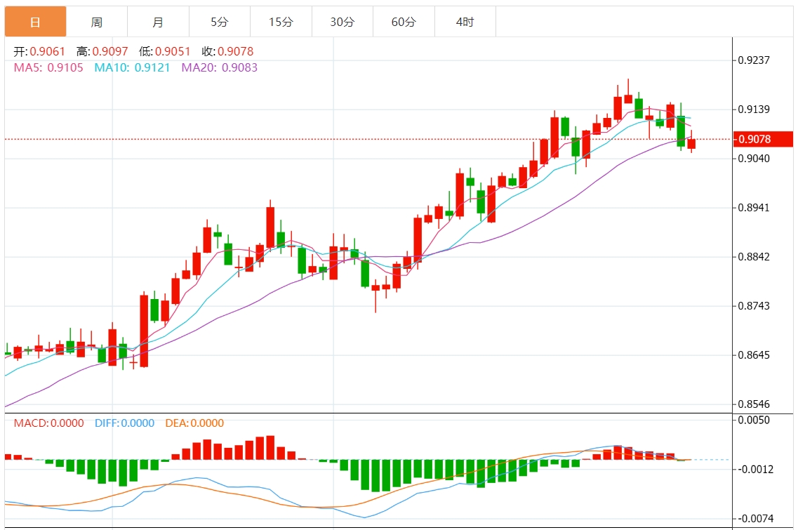 周二亚盘,美元/瑞郎震荡拉升,现报0.9078附近。市场预计瑞士央行今年将继续降息。 市场基本面分析 在当选总统唐纳德·特朗普就职典礼后,美元交易动荡。由于马丁·路德·金纪念日,美国的交易大厅将继续关闭,但美元指数(DXY)暴跌至108.30,市场等待特朗普经济计划的进一步细节,未来存在不确定性。 即将上任的