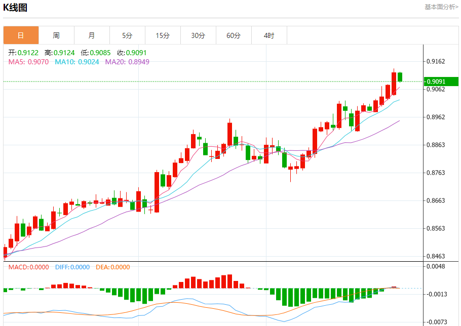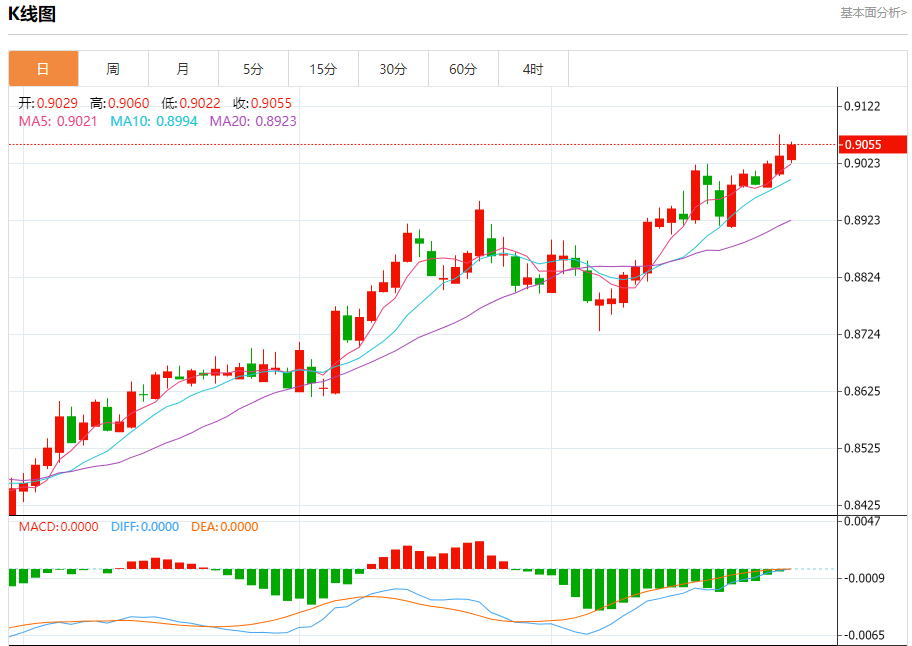 周五纽盘,瑞郎兑美元交投于0.9091,跌幅为0.36%。 瑞郎基本面分析 瑞银(UB.U)股价创下两个月来最大涨幅,此前法国巴黎银行证券部分析师Jryig预期这家瑞士银行将增加股票回购,建议投资者买入瑞银股票。ig将瑞银评级从“中性”上调至“跑赢大盘”,目标价从27.5瑞郎上调至35瑞郎。 瑞银股价周五