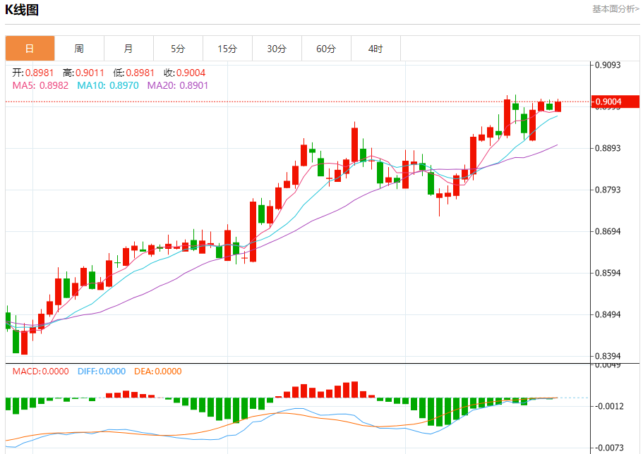 周二亚盘,美元/瑞郎货币对走软至0.9030附近,中断两日连涨。市场维持谨慎情绪和地缘政治风险可能会提振瑞郎(CHF)等避险货币。新年假期前市场仍维持波澜不惊。 美联储(Fd)降息步伐放缓的预期和美债收益率上升可能会使美元继续走强。美联储官员将2025年的利率预期从100个基点下调至50个基点。美联储主席杰罗姆-鲍威