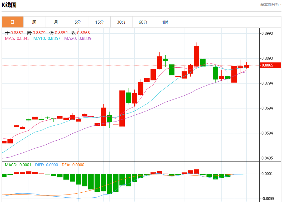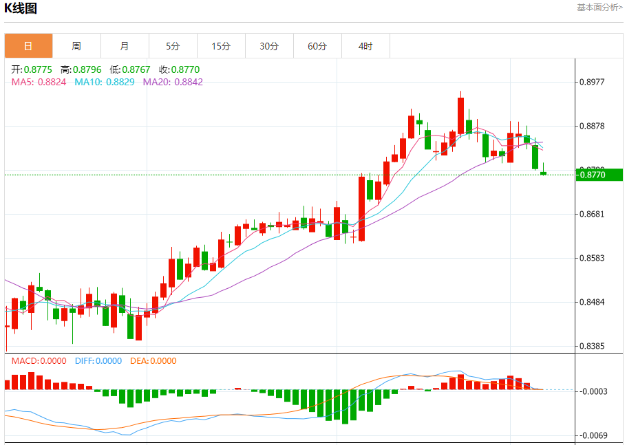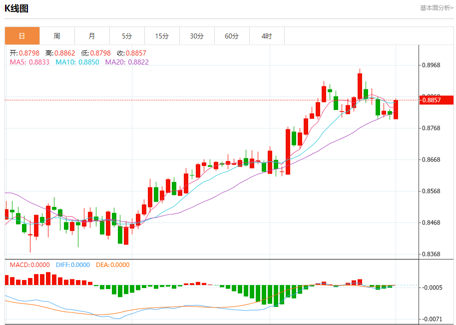 周二纽盘,瑞郎兑美元交投于0.8856,跌幅为0.10%。 瑞郎基本面分析 瑞士央行行长施莱格尔指出,瑞士正受到最大贸易伙伴德国经济疲软的影响。他说:“当德国感冒时,瑞士就会得伤风。” 瑞士央行(NB)行长施莱格尔(artinchlgl)日前在德国法兰克福出席德国联邦银行(Bundbank)活动时说,瑞士也能