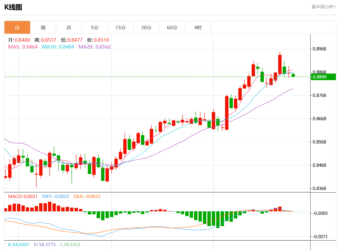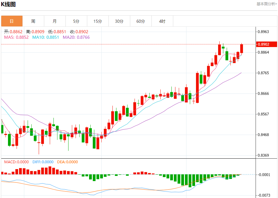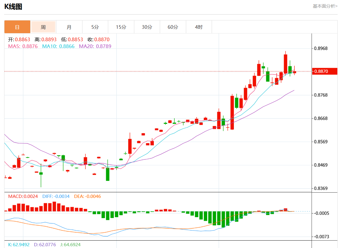 周二纽盘,瑞郎兑美元交投于0.8857,跌幅为0.08%。 瑞郎基本面分析 德国商业银行分析师ichalfitr在一份报告中说,瑞士法郎可能会进一步走强,因为瑞士央行降息的空间比其他国家要小。他指出,其他多数G10央行的此前的加息幅度都比瑞士央行高。 这意味着,如果通胀下降,这些央行更可能会进一步降息