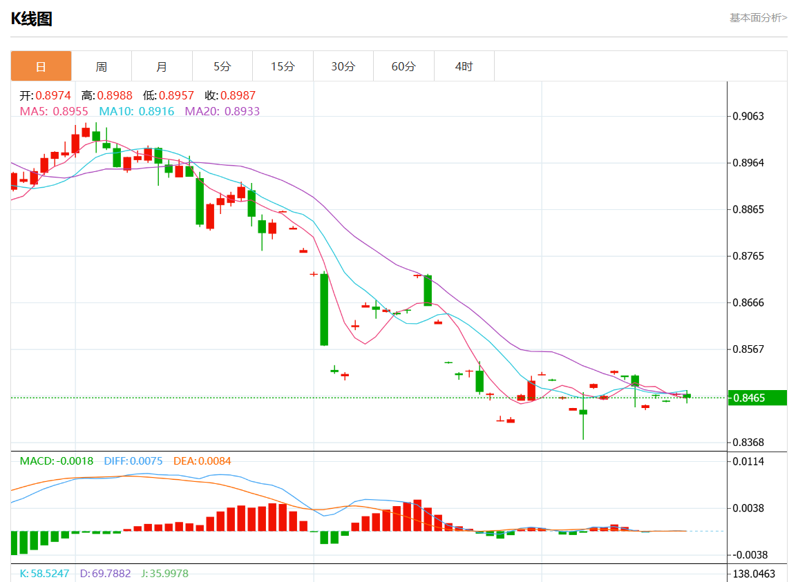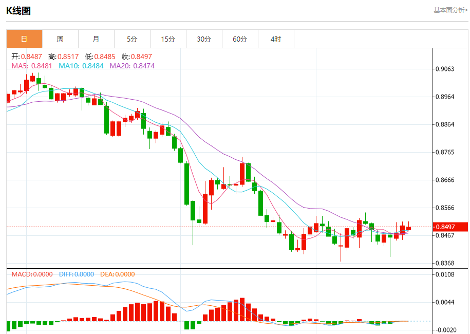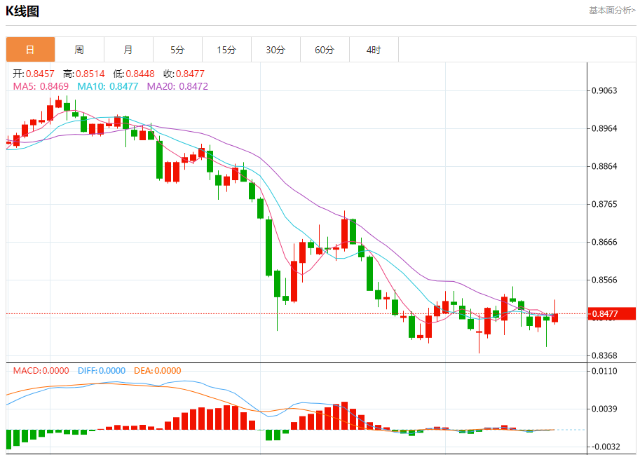 周四纽盘,瑞郎兑美元交投于0.8476,跌幅为0.33%。 瑞郎基本面分析 瑞郎的这一快速走强对瑞士央行今天的利率决定具有指导意义。 今天的议息会议是瑞士央行行长乔丹执掌央行近13年来的最后一次会议,他在掌舵期间经历了不少意外,所以再来一次也不会让人感到意外。 因此我们很有可能看到瑞士