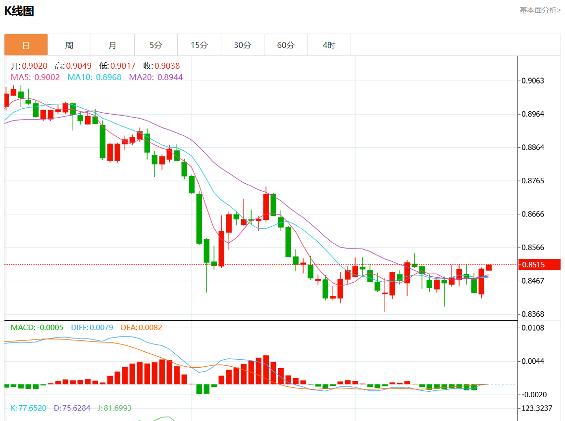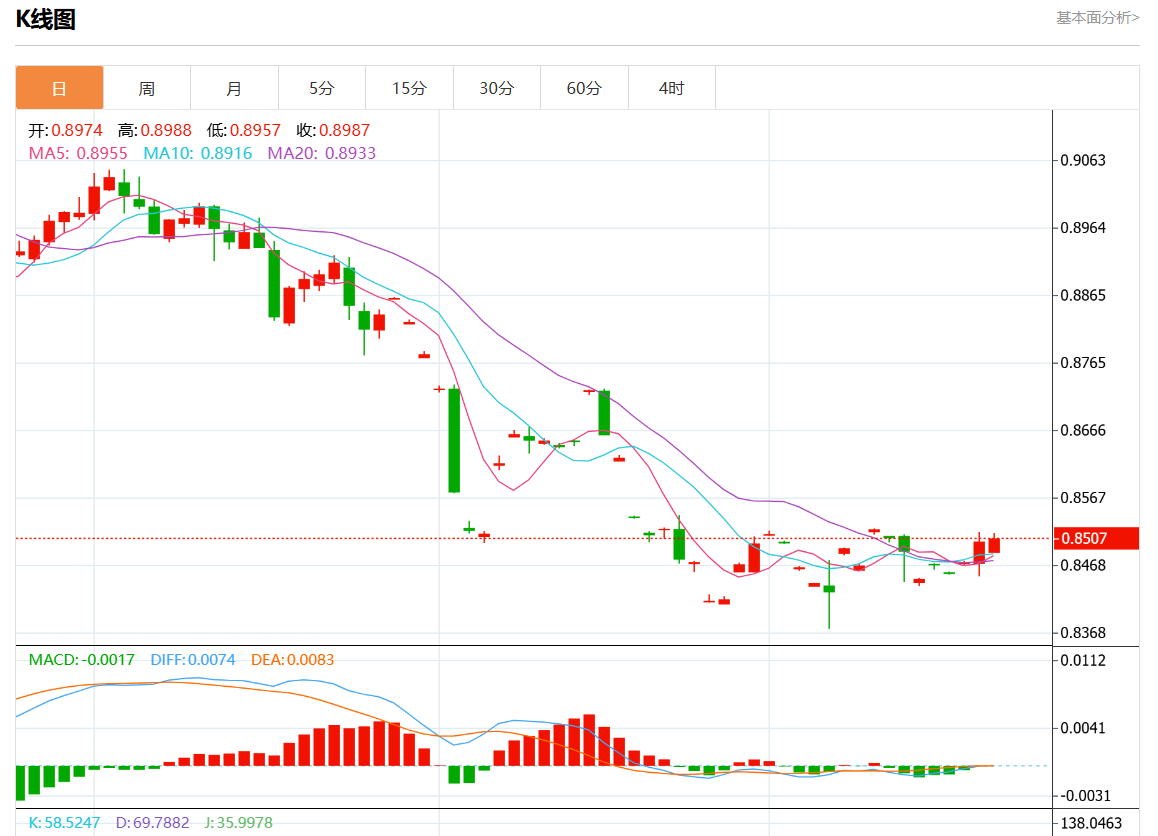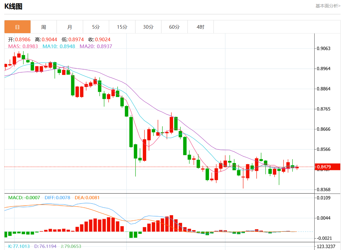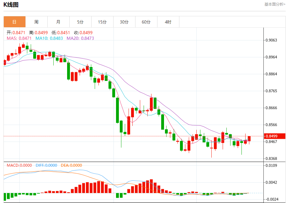 周五纽盘,瑞郎兑美元交投于0.8500,涨幅为0.26%。 瑞郎基本面分析 瑞士央行则将在周四(9月26日)召开政策会议。虽然市场对于其降息幅度看法不一,但鉴于瑞士通胀率已经低于央行预估,市场普遍认为该行很可能会提前降息。瑞士央行是今年3月率先降息的主要央行之一,但目前瑞郎(CHF)强势的表现已经对瑞