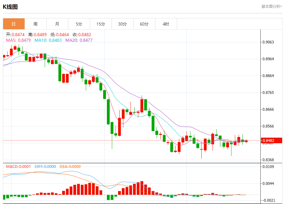 周二纽盘,瑞郎兑美元交投于0.8483,涨幅为0.08%。 瑞郎基本面分析 瑞士央行(NB)再次降息的时机已经到来。市场目前认为,瑞士央行周四选择降息50基点的可能性为49%,已经完全消化掉连续第三次降25个基点至1.0%的可能性。全球经济环境目前正面临诸多问题,包括通胀压力和地缘政治的不确定性,因此这一决