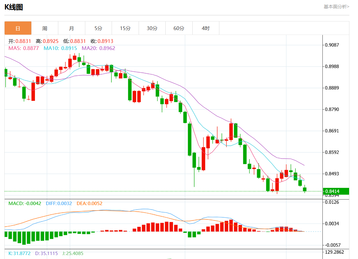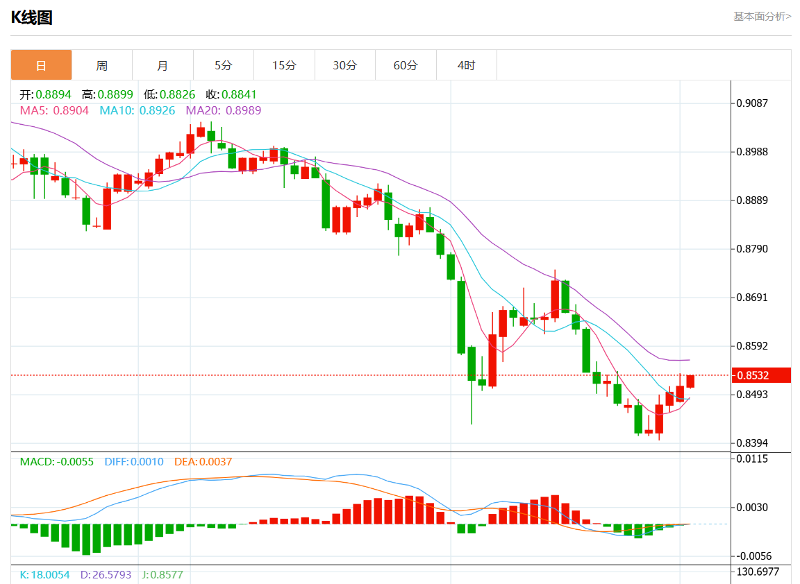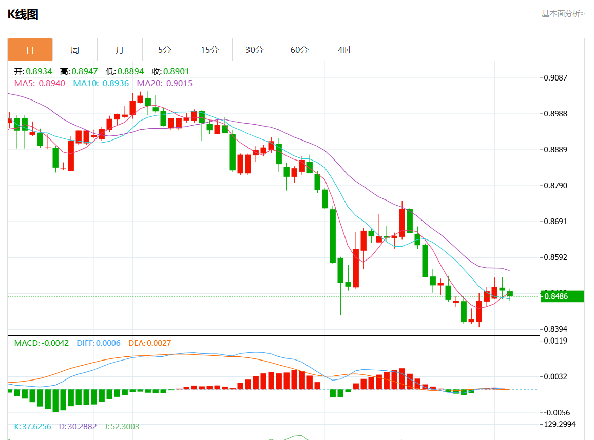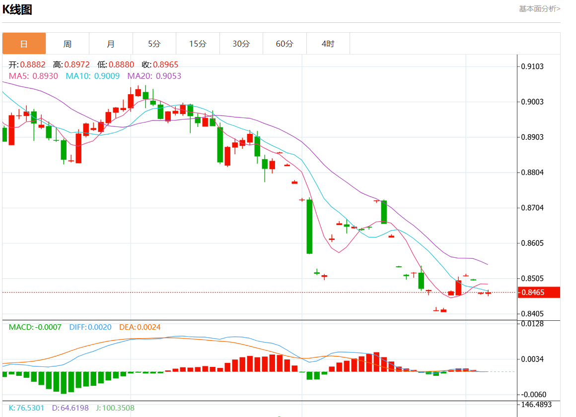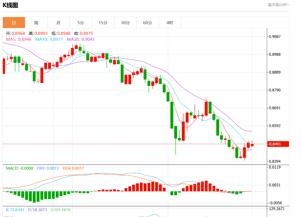 周三盘中,美元/瑞元报0.8486,跌幅0.20%. 今日分析:在0.8750之下,看跌,目标价位为0.8331,然后为0.8120。 技术点评:RI技术指标看跌,有进一步下降空间。 支撑位:0.90400.88800.8750 阻力位:0.83310.81200.8000 (亚汇网编辑:静香)