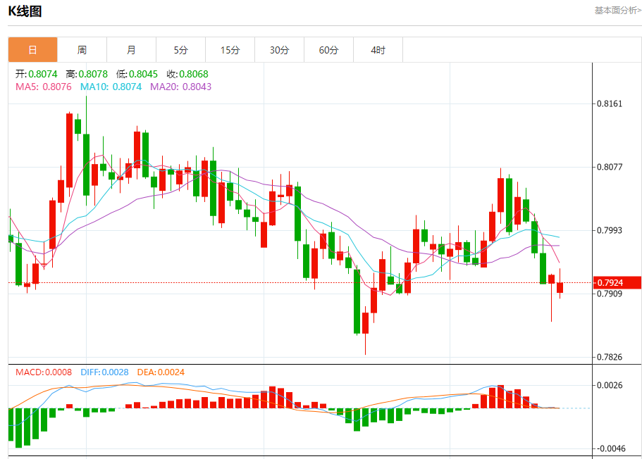 10月20日,周一欧市初盘,美元/瑞郎连续第二天站稳脚跟,周一欧市初盘徘徊在0.7930附近。随着瑞士法郎(CHF)因国内经济担忧而走弱,该货币对获得支撑。交易员可能会观察定于周二发布的瑞士贸易差额数据,以进一步推动瑞士经济。 瑞士经济事务国务秘书处(CO)在10月份的展望中将瑞士2025年GD增长预测维持在低于平均水