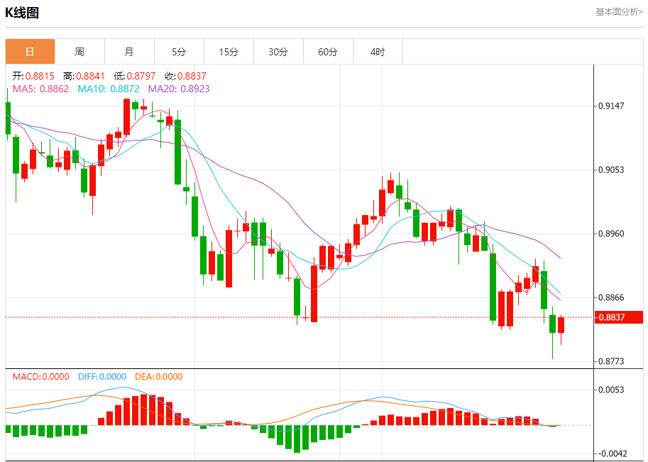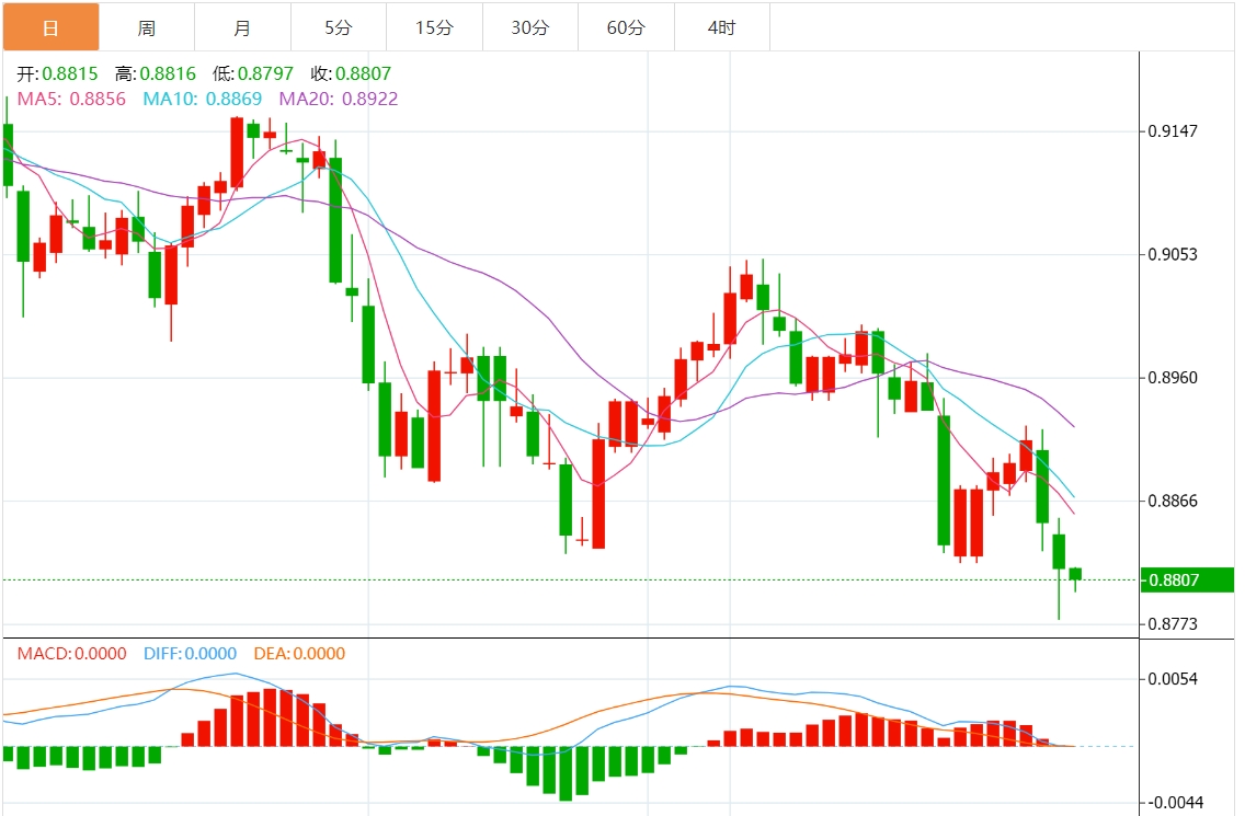 周四欧盘,美元兑瑞郎连续第二天扩大跌幅,收于0.8810附近。瑞士法郎(CHF)因全球经济不确定性下的避险资金流动而上涨。 全球股市的负面情绪影响了风险资产,这促使投资者转向避险瑞士法郎。美国股指下跌,因为科技股遭受更多损失,美国主要科技公司特斯拉和Alhabt令人失望的季度收益加剧了这种情况。此外,随着科技股