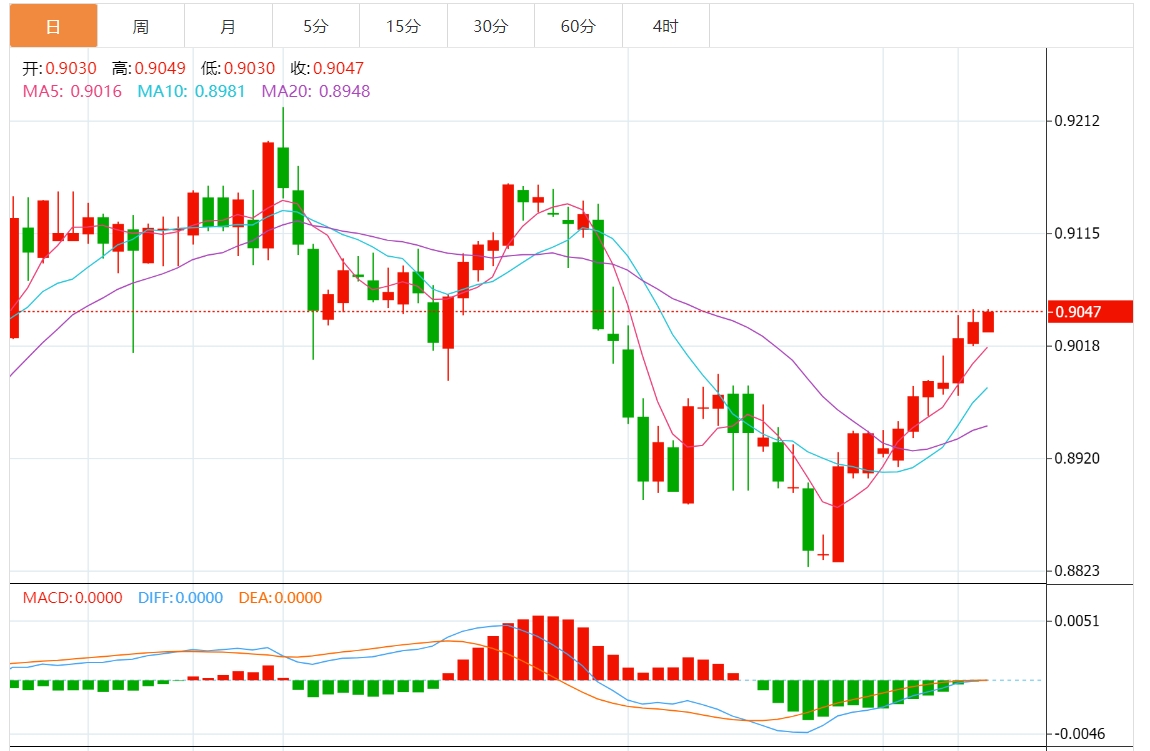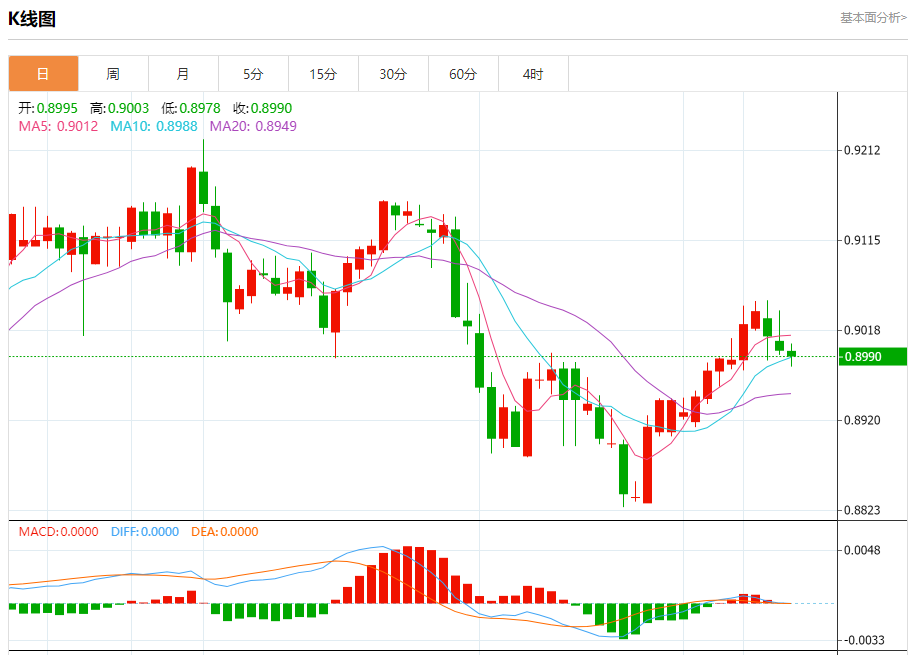 周三盘中,美元/瑞元报0.9048,涨幅0.12%. 今日分析:在0.9050之下,看跌,目标价位为0.9030,然后为0.9015。 技术点评:只要依旧存在0.9050阻力位,价格波动存在看跌的趋势。 支撑位:0.90800.90650.9050 阻力位:0.90300.90150.9000 (亚汇网编辑:静香)