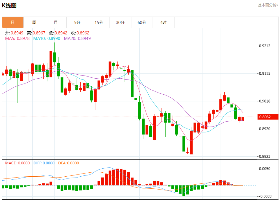 周一盘中,美元/瑞元报0.8902,跌幅0.04%. 今日分析:在0.8970之下,看跌,目标价位为0.8930,然后为0.8915。 技术点评:跌破0.8970,为空头信号,向下的目标将会是0.8930。 支撑位:0.90050.89900.8970 阻力位:0.89300.89150.8900 (亚汇网编辑:静香)