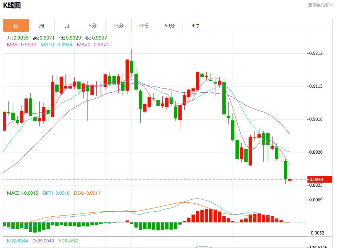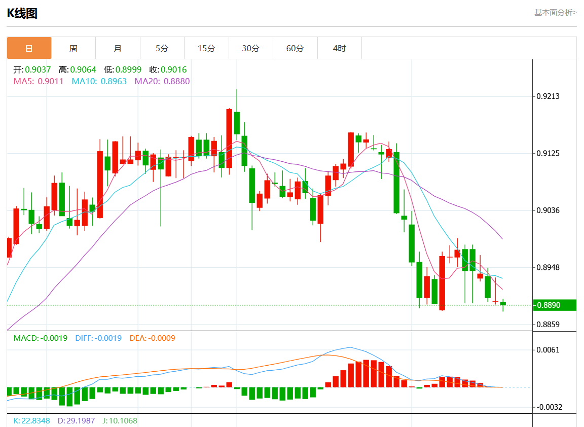 周二盘中,美元/瑞元报0.8890,跌幅0.04%. 今日分析:在0.9020之下,看跌,目标价位为0.8720,然后为0.8550。 技术点评:跌破0.9020,为空头信号,向下的目标将会是0.8720。 支撑位:0.92400.91600.9020 阻力位:0.87200.85500.8330 (亚汇网编辑:静香)