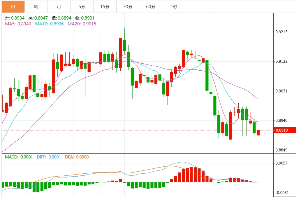 周一盘中,美元/瑞元报0.8914,涨幅0.16%. 今日分析:在0.8930之下,看跌,目标价位为0.8890,然后为0.8875。 技术点评:只要依旧存在0.8930阻力位,价格波动存在看跌的趋势。 支撑位:0.89650.89450.8930 阻力位:0.88900.88750.8860 (亚汇网编辑:静香)