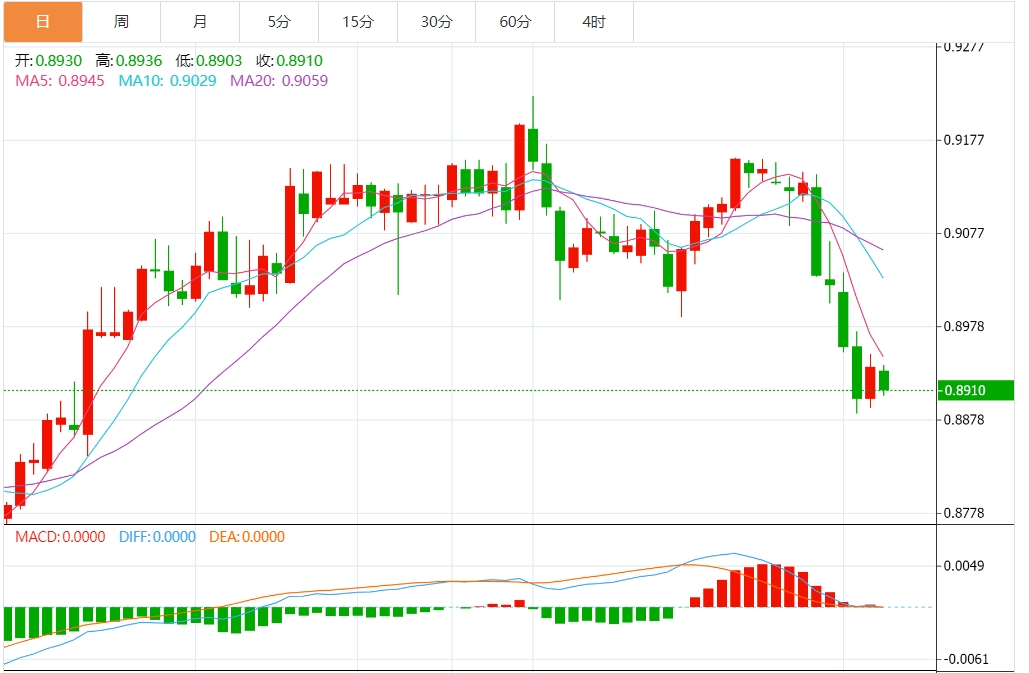 美元/瑞郎技术分析 美元/瑞郎未能突破0.8987支撑位,尽管突破了阻力位,但还是果断地转为阻力位。盘中偏差首先保持中性。上行方面,在从0.8883斐波那契水平获得支撑后,0.8987支撑位转为阻力位的坚挺突破将表明,从0.9223开始的修正已经完成。盘中偏差将回到0.9157/9223阻力区的上行。然而,持续突破0.8883斐波那契水平