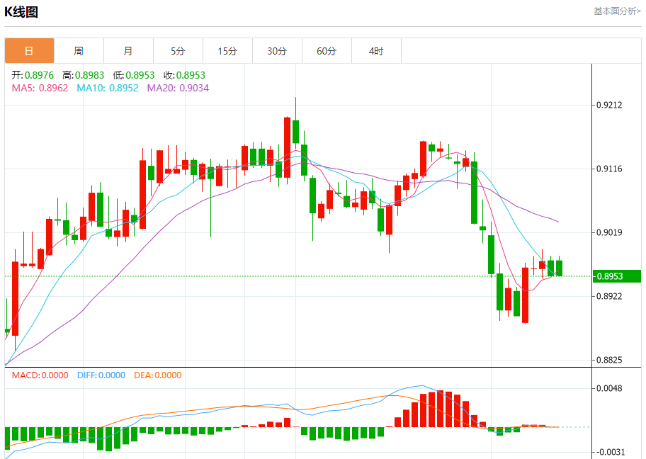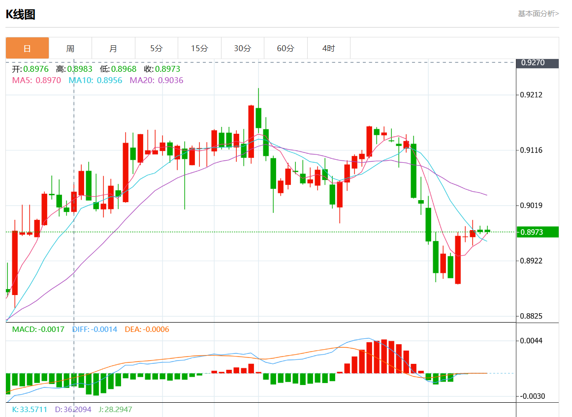 周三盘中,美元/瑞元报0.8971,跌幅0.04%. 今日分析:在0.8995之下,看跌,目标价位为0.8965,然后为0.8950。 技术点评:跌破0.8965位置,将会引发下跌至0.8950。 支撑位:0.90250.90100.8995 阻力位:0.89650.89500.8935 (亚汇网编辑:静香)