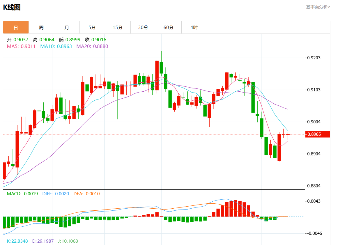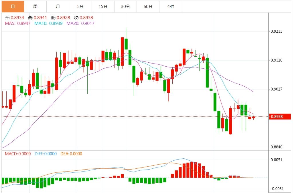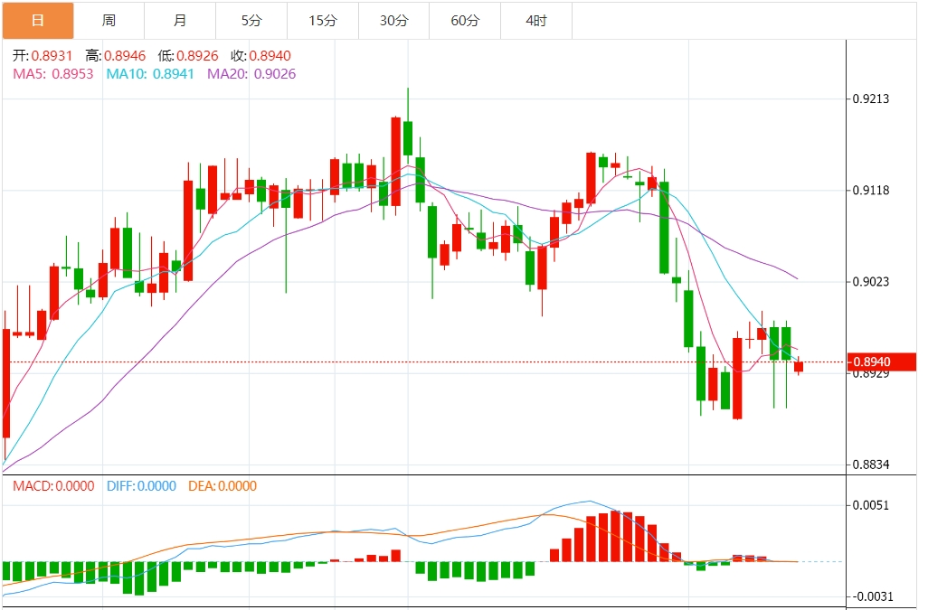 周三欧盘,美元/瑞郎横盘整理,流动性较低,目前交投于0.8970附近。由于瑞士国家银行(NB)不太可能在6月份实施降息,瑞士法郎(CHF)兑美元(UD)获得支撑。此前,瑞士央行行长托马斯·乔丹(ThoaJ.Jordan)警告称,通胀预期存在轻微的上行风险。 围绕瑞士央行的鹰派情绪瑞郎可能会升值 交易员正等待周四的瑞士央行金