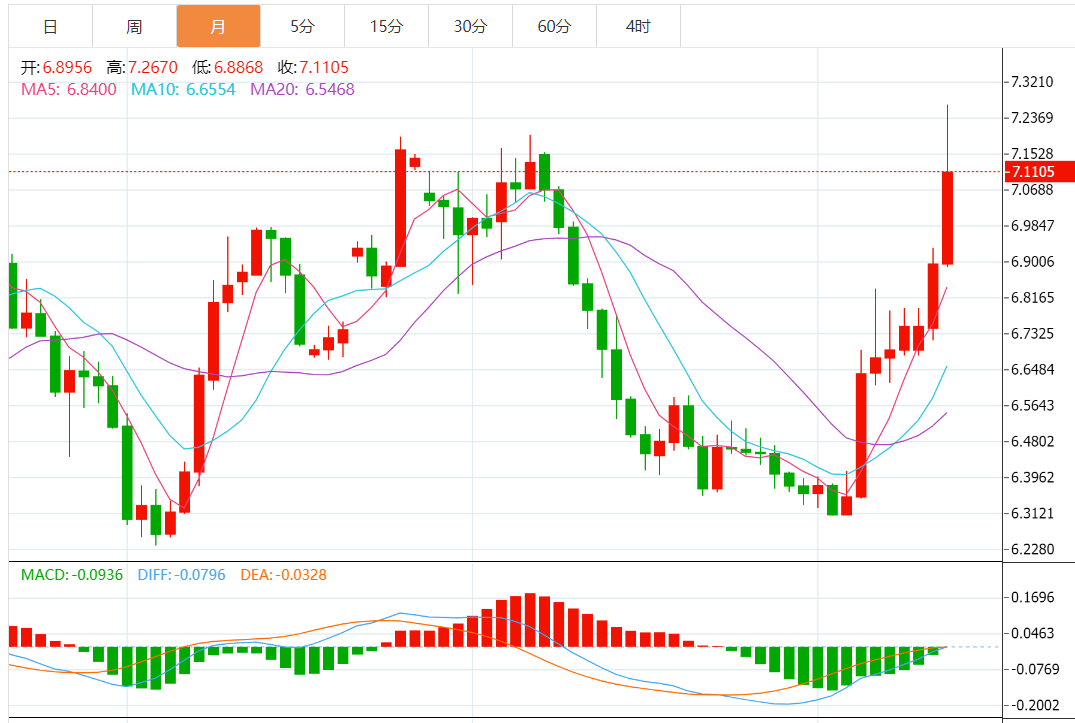 9月份,截止发稿,美元/人民币涨逾3%,连续7个月上涨,整体呈现上升趋势。今年以来,人民币汇率走势持续分化,以CFETS一篮子货币来看,人民币对美元等10种货币呈现贬值态势,对欧元等14种货币保持升值态势。