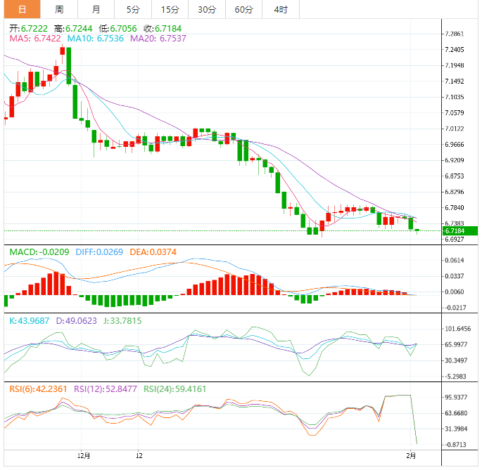 与此同时,在挑战21日移动均线6.7680附近的阻力位之前,恢复走势可能会首先突破10日移动均线6.7570的障碍。