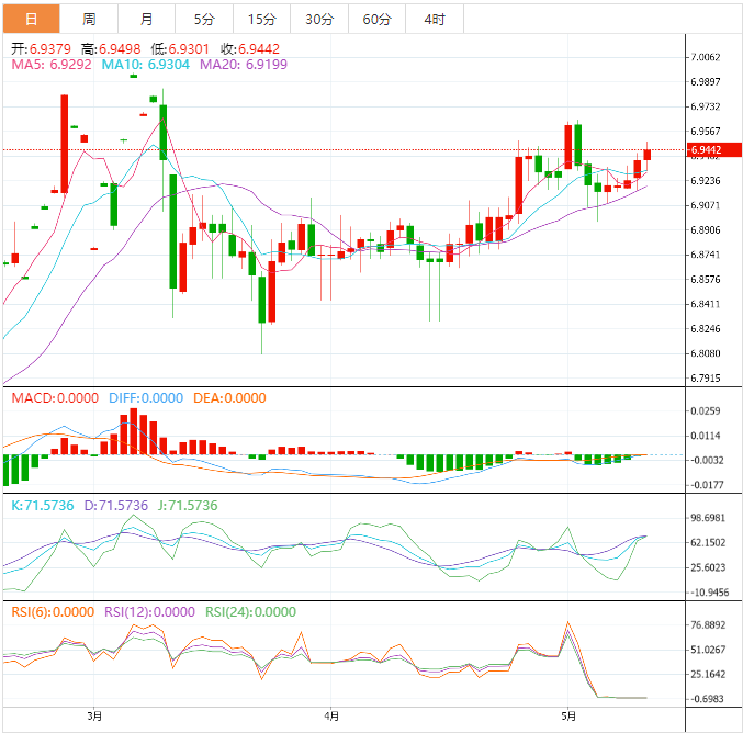 从技术上讲,美元兑离岸人民币仍处于两个月来形成的对称三角形,目前在6.9560 - 6.9190之间。增强该货币对最近的上行压力的可能是更坚挺的相对强弱指数(14)线,而不是超买。