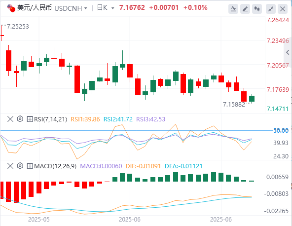 今日美元/离岸人民币汇率走势预测(2025年6月25日)