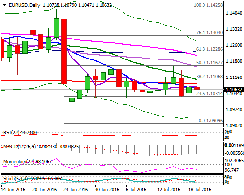 隔夜欧元/美元从时段高位1.1080下滑,初步支撑1.1030(周五低位),短期技术前景中性偏负面,暗示缺乏进一步的方向性指引,汇价依旧在1.1030/1.1080区间震荡。