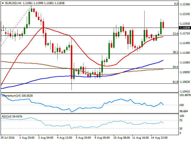 技术面上,欧元/美元隔夜收盘未能站上1.1190/1200,4小时图显示技术指标在正面领域下滑,动能指标进入负面领域。汇价维持在20SMA上方,同时位于近期升势的23.6%回撤位上方,重要支撑位于1.1125,即上述升势的38.2%回撤位,一旦跌穿将开启进一步下行空间。