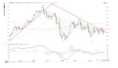 从美原油日图级别来看,油价继续偏震荡运行,始终没有出现较为明显的趋势。均线系统粘合并无限排列,没有方向可言,指标也处于纠结状态。从K线来看,虽然出现长阳,但并没有出现突破或破位的格局,而K线的上影线也突显了油价仍然较为疲软的态势。总体而言,美原油处于区间盘整状态,可在区间内进行高抛低吸。