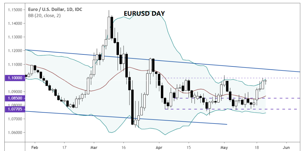日图显示,欧元/美元昨日触及整数位关口阻力1.10回落,但是受挫程度轻微,汇价日内可能反弹再次尝试突破。若挑战1.10关口成功,也将意味着摆脱近一个半月的振荡走势,料将迎来较大上涨空间。而若短线回调,目前下方初步支持在1.0950,进一步回调关注1.0900-1.0910区域的支撑。