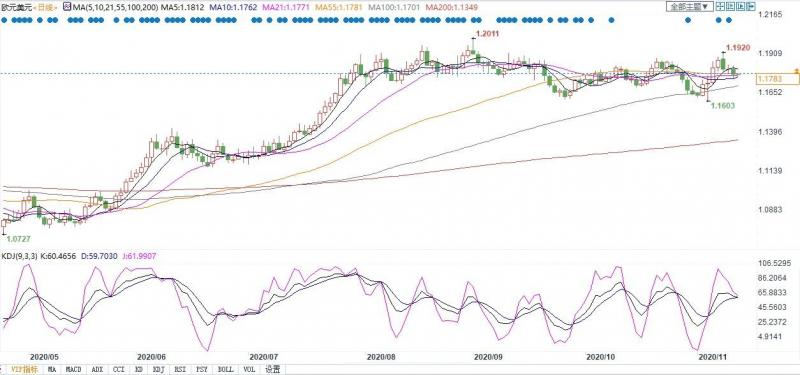 11月10日(周三),欧洲央行行长拉加德警告称,新冠肺炎疫苗不会立即对欧元区经济造成影响,经济复苏道路仍是不稳定的。欧洲央行可能会进一步削减银行借贷成本,并调整其与疫情相关的资产购买计划。此外,欧洲央行管理委员会委员Klaas Knot并未排除12月降息的可能性。荷兰合作银行警告,欧元上行空间仍受限,年内将继续交投于1.16-1.20区间。