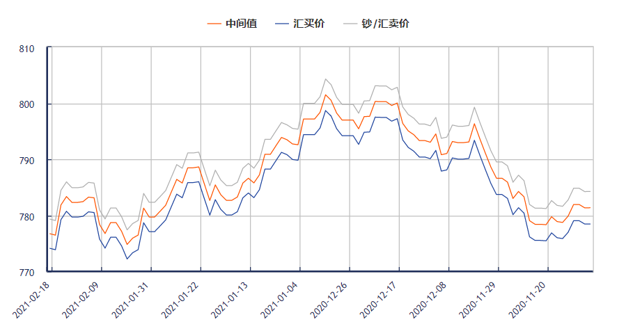 外汇网提供今日欧元兑换人民币汇率最新中间价(2021年2月18日):