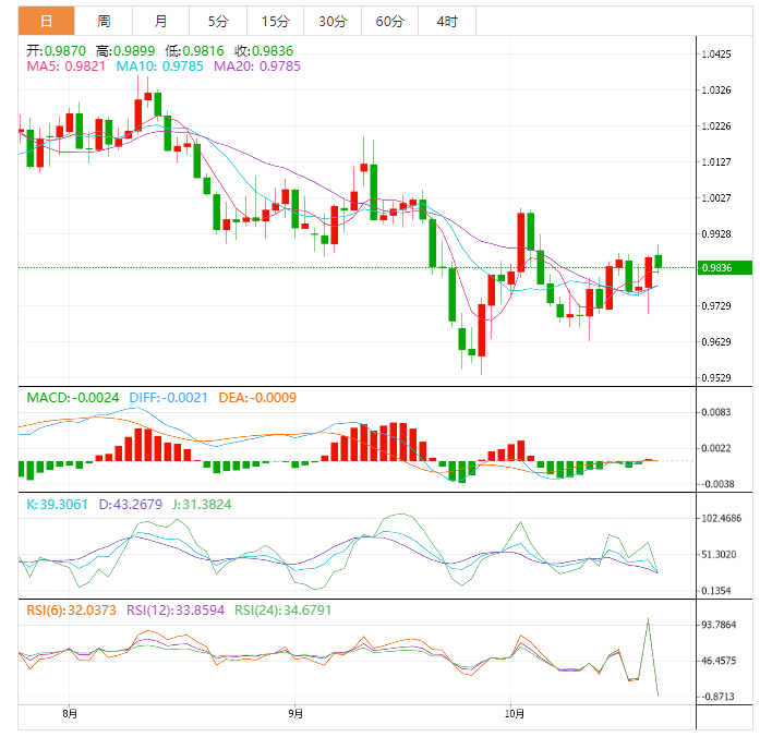周一,由于投资者重新关注即将到来的美国消费者信心数据和欧洲央行(ECB)的决定,欧元兑美元的价格出现横向波动。欧元兑美元报0.9845,略高于上周的低点0.9698。这个价格比今年的最低价高出3.3%左右。
