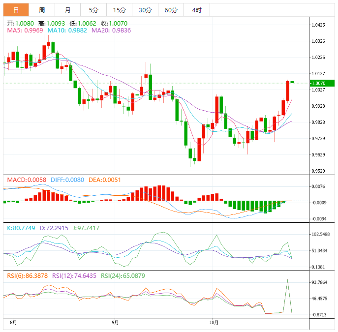 位于0.9950的20期指数移动平均线(EMA)目标更高,这增加了上行过滤器。