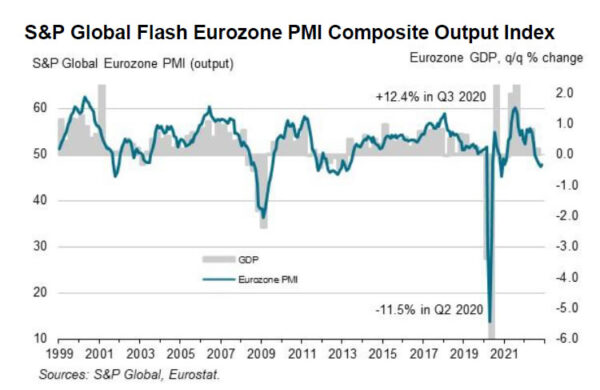 欧元区PMI综合指数上升至47.8,与第四季度GDP收缩-0.2%一致