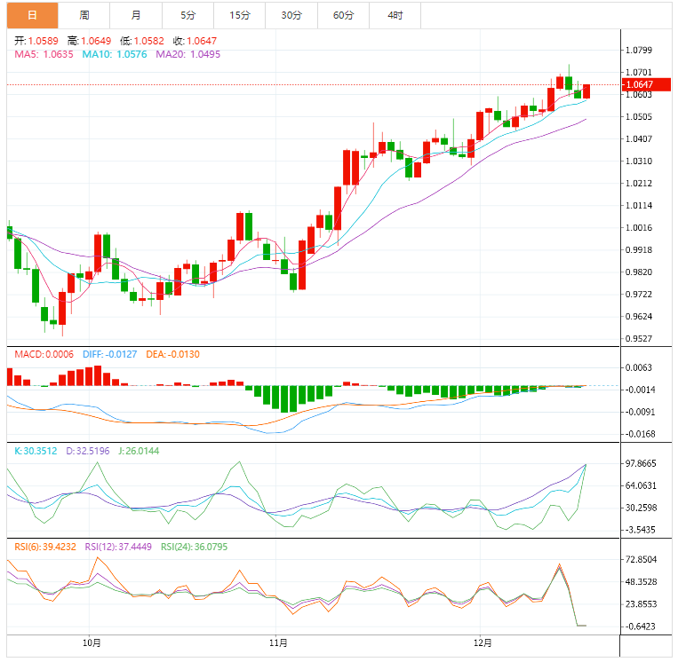 欧元基本面:欧元/美元结束两日下跌趋势,震荡于1.0600附近。欧元/美元短线波动不大,可能与本周美国数据公佈前市场维持谨慎情绪,以及围绕欧洲经济增长前景喜忧参半有关。然而欧央行政策制定者维持鹰派措辞且央行有望加息让多头抱有希望。年底市场维持盘整和市场维持节日情绪且经济事件清淡阻止欧元/美元波动。即便如此,美国第三季度国内生产总值终值和美联储最为看重的通胀数据,即上週五公佈的美国核心个人消费支出指数,预期年率为4.6%,前值5.0%,将是影响欧元/美元的关键催化剂。