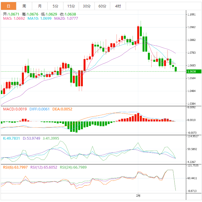 欧元技术面:欧元兑美元显示出更多的看跌偏见,将接近第一个负面目标位1.0635,我们建议继续下跌,以超过这一水平,并朝着下一个目标位1.0515前进。EMA50形成持续的负压,支持继续看空趋势的预期,注意到价格形成负面模式,有负面目标超过上述水平,达到1.0285区域。