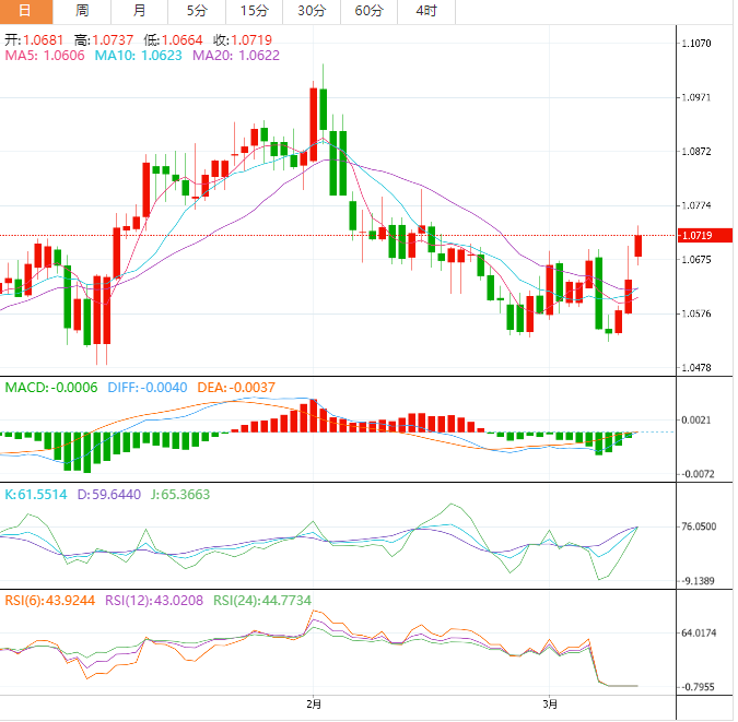 欧元技术面:欧元兑美元今天以额外的积极情绪开始,突破1.0645水平,并在其上方稳定,这推动价格在盘中取得更多的涨幅,目标是测试1.0745作为下一站,注意到突破这一水平将推动价格继续上涨,并朝着1.0800前进,然后1.0925作为下一个主要目标。移动到EMA50之上支持预期看涨趋势的延续,而随机因素可能会在恢复看涨偏见之前导致一些暂时的横向波动。另一方面,应该注意到突破1.0645并保持在它下方将停止建议的看涨浪潮,并推动价格再次下跌。