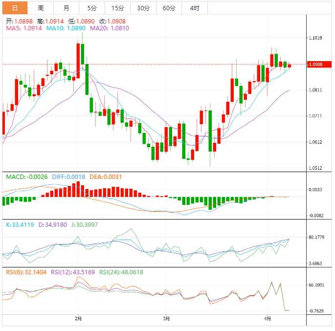 欧元基本面:欧元/美元跌破1.0900整数关支撑。欧元/美元吸引了大量卖盘,因为投资者在美国通胀数据公布前变得焦虑不安。美国通胀的公佈预计将为美联储(FED)的利率政策提供明确的指引。欧元区方面零售销售数据将受到热切关注。零售销售(3月)月率预计将处在收缩录得-0.8%,而2月则处在上升,录得0.3%。而零售销售(3月)年率预期将自前值-2.3%进一步收缩至-3.5%。