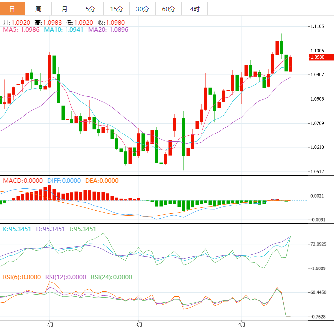 到目前为止,欧元兑美元上涨了0.34%,至1.0960,如果突破1.1075(2023年4月14日的最高价),目标位将是1.1100(一轮水平),并将升至1.1184(2022年3月21日的周最高位)。